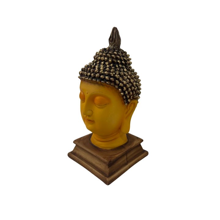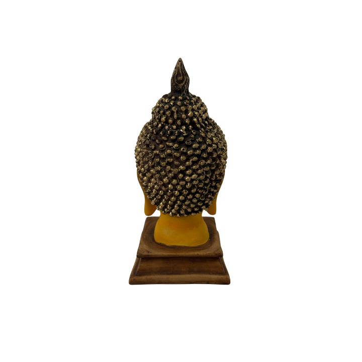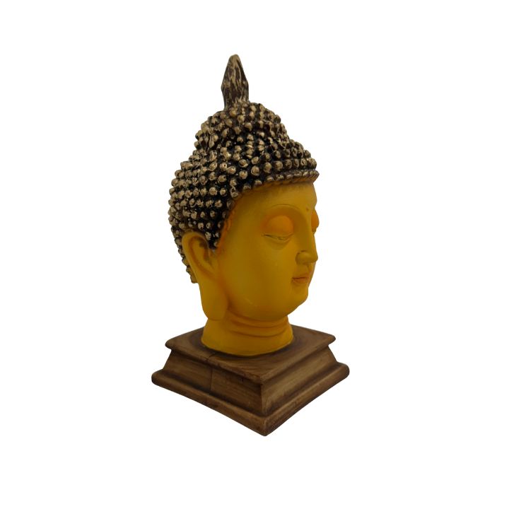 • This beautifully crafted Buddha-head statue represents calmness and depth.
