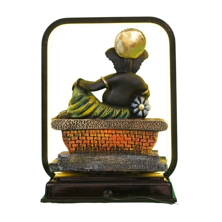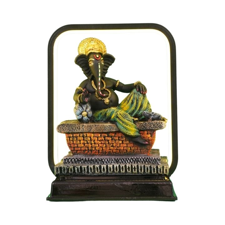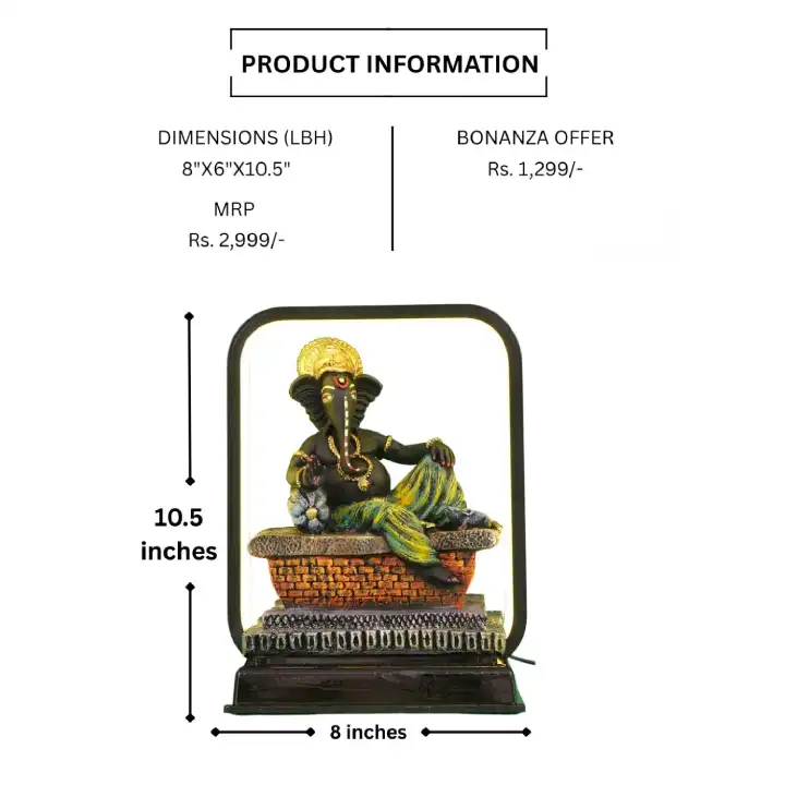 - The idol is set within a decorative frame, sitting on a carved platform, making it ideal for display in homes and offices as a symbol of peace, prosperity and good fortune.