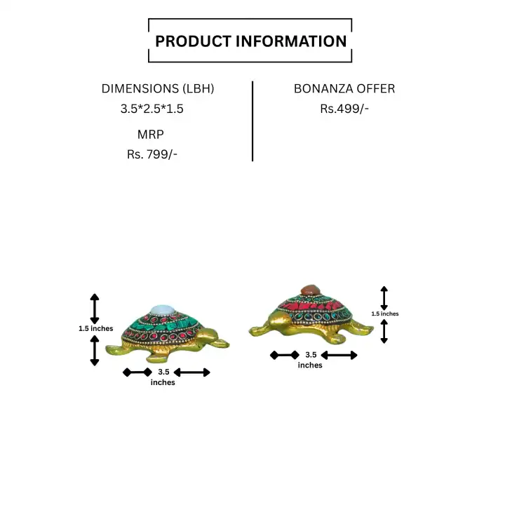 • Associated with Lord Vishnu’s Kurma avatar, the presence of a pair of turtles promotes stability & harmony in relationships, making them a popular choice for bedrooms or family living areas.